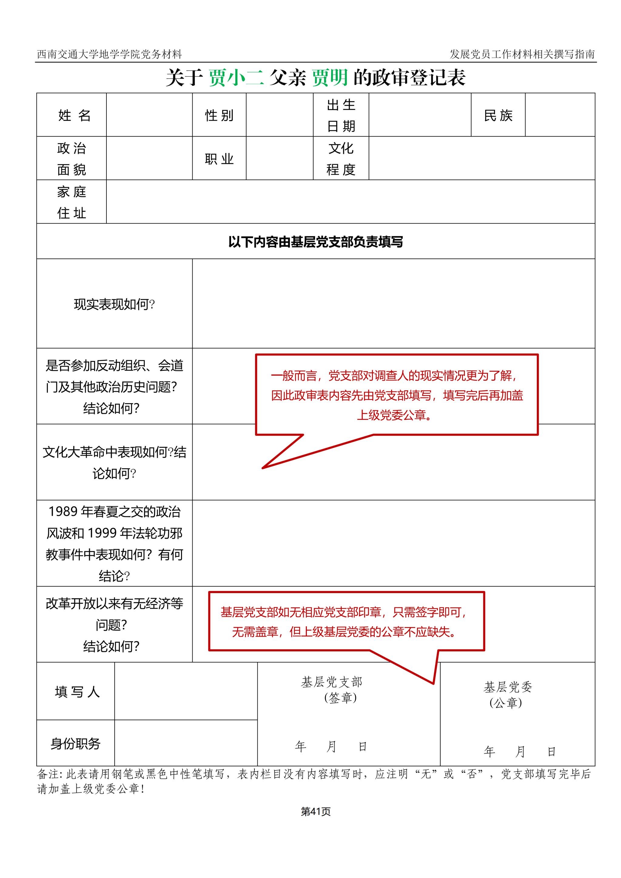 三、政审登记表撰写指南:
