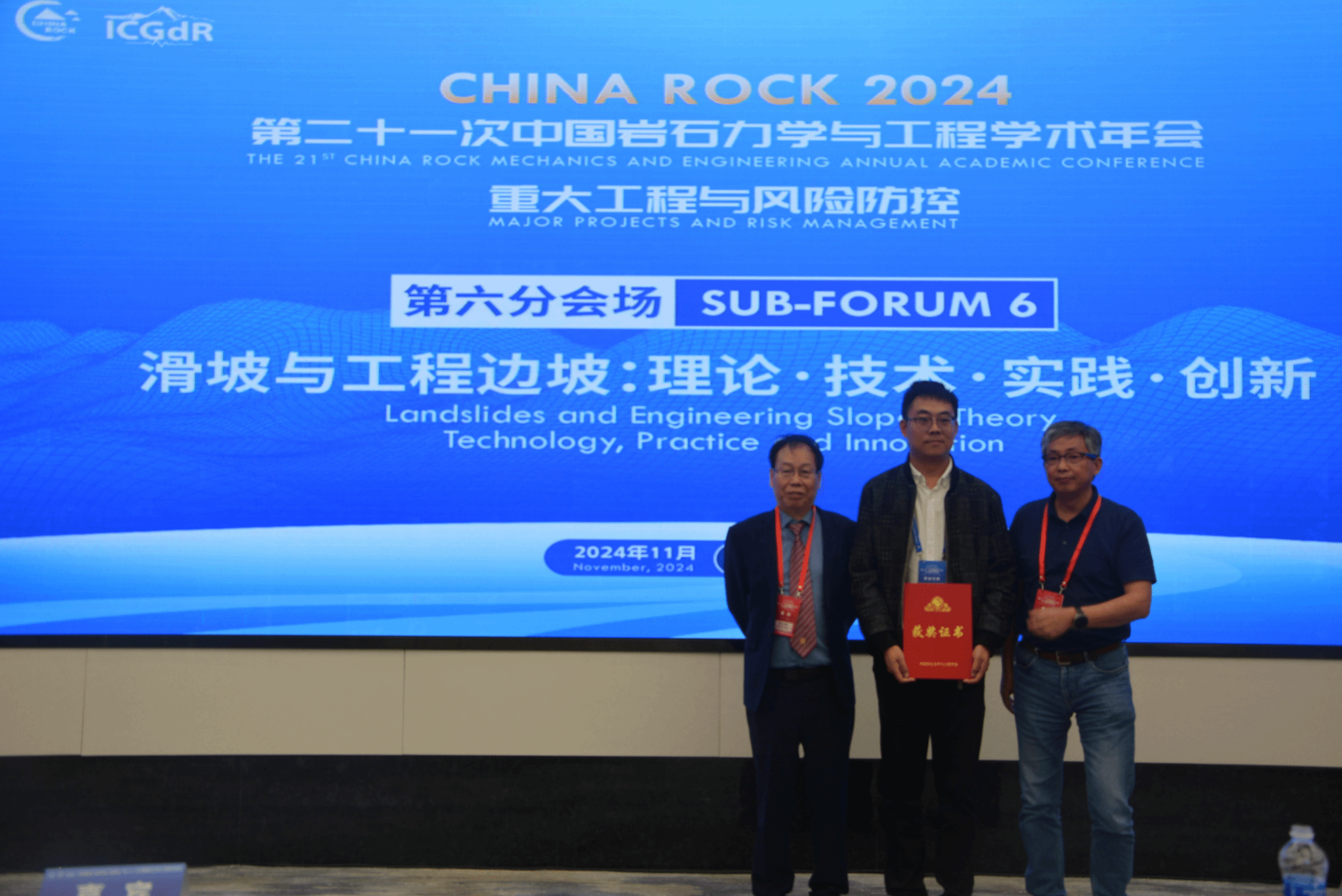 会议期间,赵晓彦副院长受邀于第六分会场—“滑坡与工程边坡:理论·技术·实践·创新”作了题为“斜坡稳定的阴阳坡效应”的特邀报告;胡卸文教授和程谦恭教授受邀于粤港澳大湾区-珠江西江经济带中心会场分别作了题为“四川省雅江3.15森林火灾火后泥石流发育特征及综合防控”和“青藏高原高速远程滑坡研究的新发现、新认识、新观点”的特邀报告;罗刚副教授于第六分会场作了题为“落石冲击碎裂机理及桩板拦石墙动力响应”的专题报告;石宇副教授于第十一分会场作了题为“地下含水层CO2储热与封存规律研究”的专题报告;张仕林助理教授于第六分会场作了题为“高位滑坡碎屑流边界层动力侵蚀夹带效应研究”的专题报告。