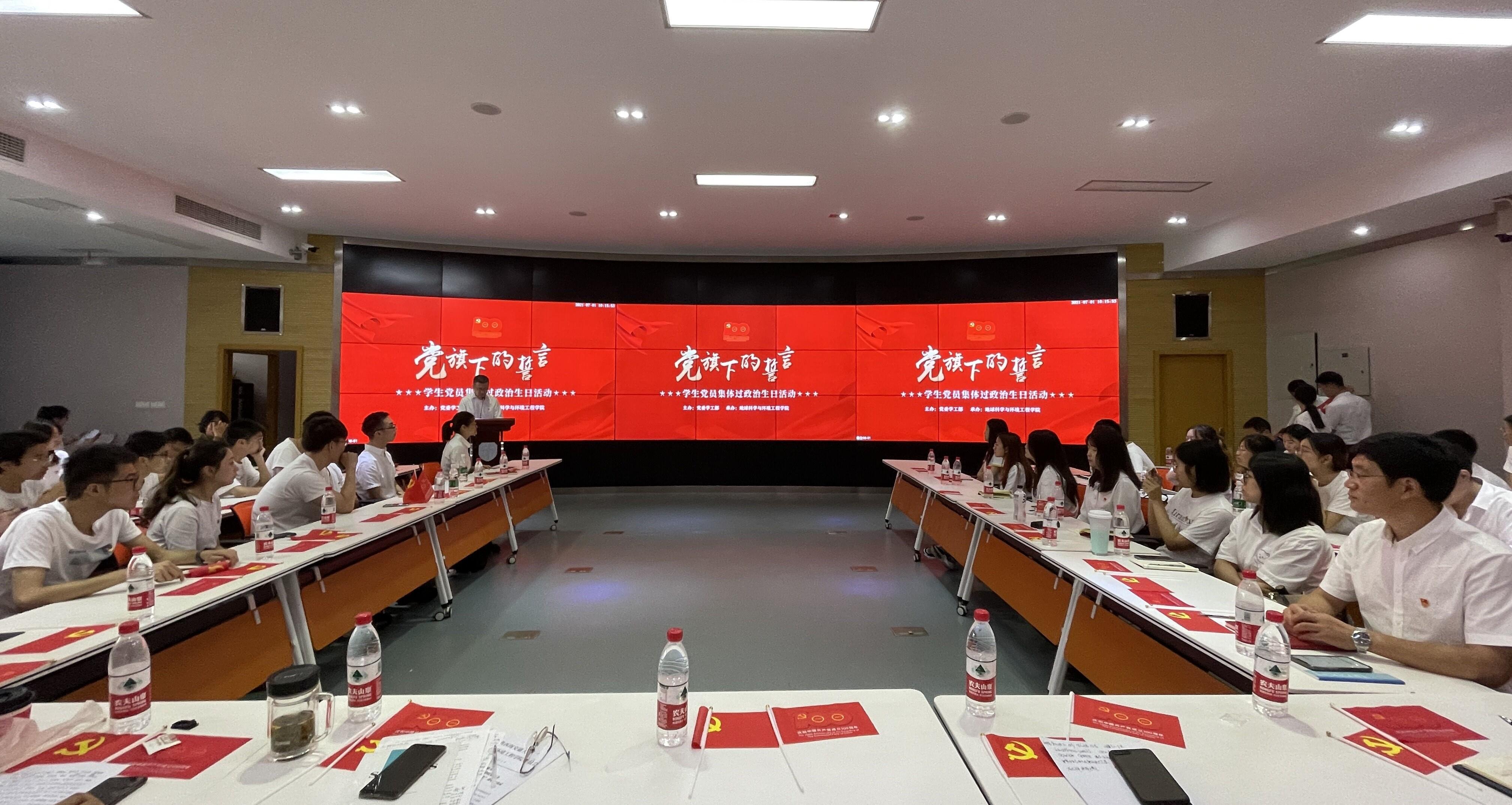 为热烈庆祝中国共产党成立100周年,教育引导全体学生党员始终坚定跟党走的信念,坚决做到一句誓言、一生作答。2021年7月1日10时,由党委学生工作部主办,地球科学与环境工程学院承办的“党旗下的誓言”——学生党员集体过“政治生日”活动在四号教学楼多功能报告厅X4243举行。