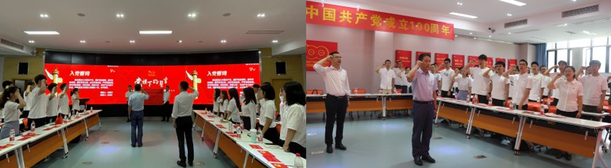 活动伊始,全体党员在党委书记关秦川的带领下面向鲜红的党旗,郑重地举起右拳,用铿锵有力的声音,重温入党誓词,嘹亮的誓言回荡在报告厅内,坚定的信念深深烙印在每个人的心中。