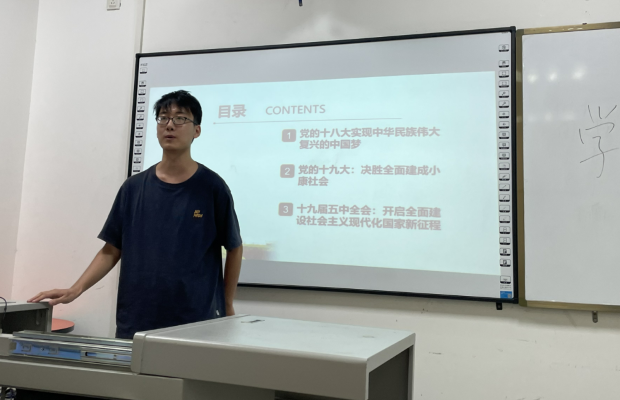 遥感二班代表带领学习党的十八大、党的十九大以及十九届五中全会的大致内容和历史意义,坚定了实现中华民族伟大复兴的中国梦,让大家认识到中国已开启全面建设社会主义现代化国家的新征程。