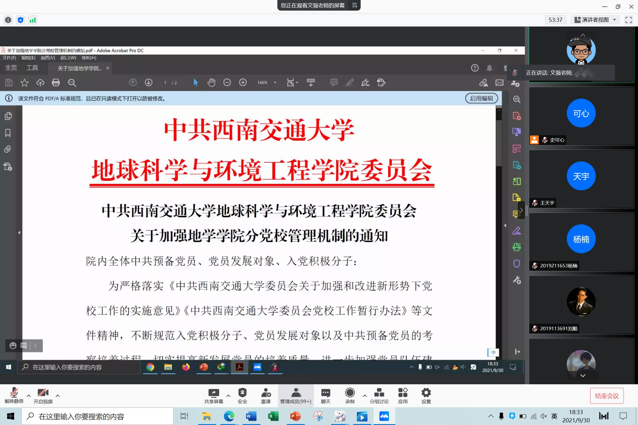 分党校于9月30日下午18:00通过腾讯会议线上开展“百年英烈铸党魂,砥砺奋进续新篇”——“学党史·祭英烈”主题教育活动,本次活动由污污漫画