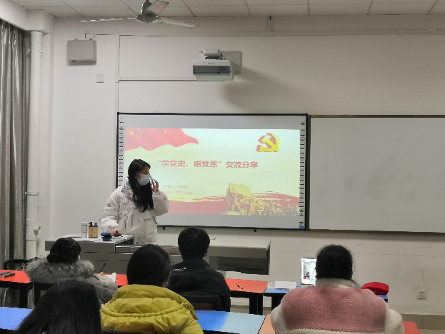 李佳琪、朱靖宜、陈绣文、靳凯和董浩五位同志通过PPT形式介绍分享自身学习党史和书籍的经验成果。李佳琪和董浩两位同志以《摆脱贫困》一书为基点,向参会人员详细介绍了习近平总书记的第一部个人专著。最后她总结道,《摆脱贫困》真实记录了习近平总书记在宁德地区工作期间贯彻落实党的路线方针政策,全面建设小康社会、推进中国特色社会主义事业的实践探索,展现了他在经济建设、政治建设、文化建设、社会建设、生态文明建设和党的建设等方面的重要思想,体现了他坚定的政治立场、价值追求和思想风范,彰显了他坚持群众观点、践行群众路线的一贯作风和情怀,具有极强的理论价值和实践价值。