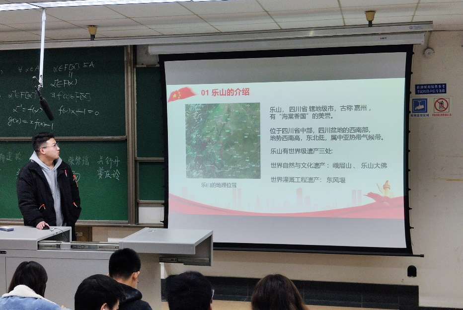 潘俊杰同志分享了他的家乡“四川乐山”,他先分享了家乡的各种美食和旅游景点,每年吸引着大量的游客前往。但是在乐山的金口河,闪烁着革命先烈们的光辉。他播放了纪录片讲述全国唯一的铁道兵专题博物馆的故事,让我们深刻了解在那段可歌可泣的峥嵘岁月,勇敢的铁道兵把忠诚和豪迈,镌刻在了祖国的崇山峻岭,在被视为筑路禁区的地方,竖起了一座历史的丰碑。