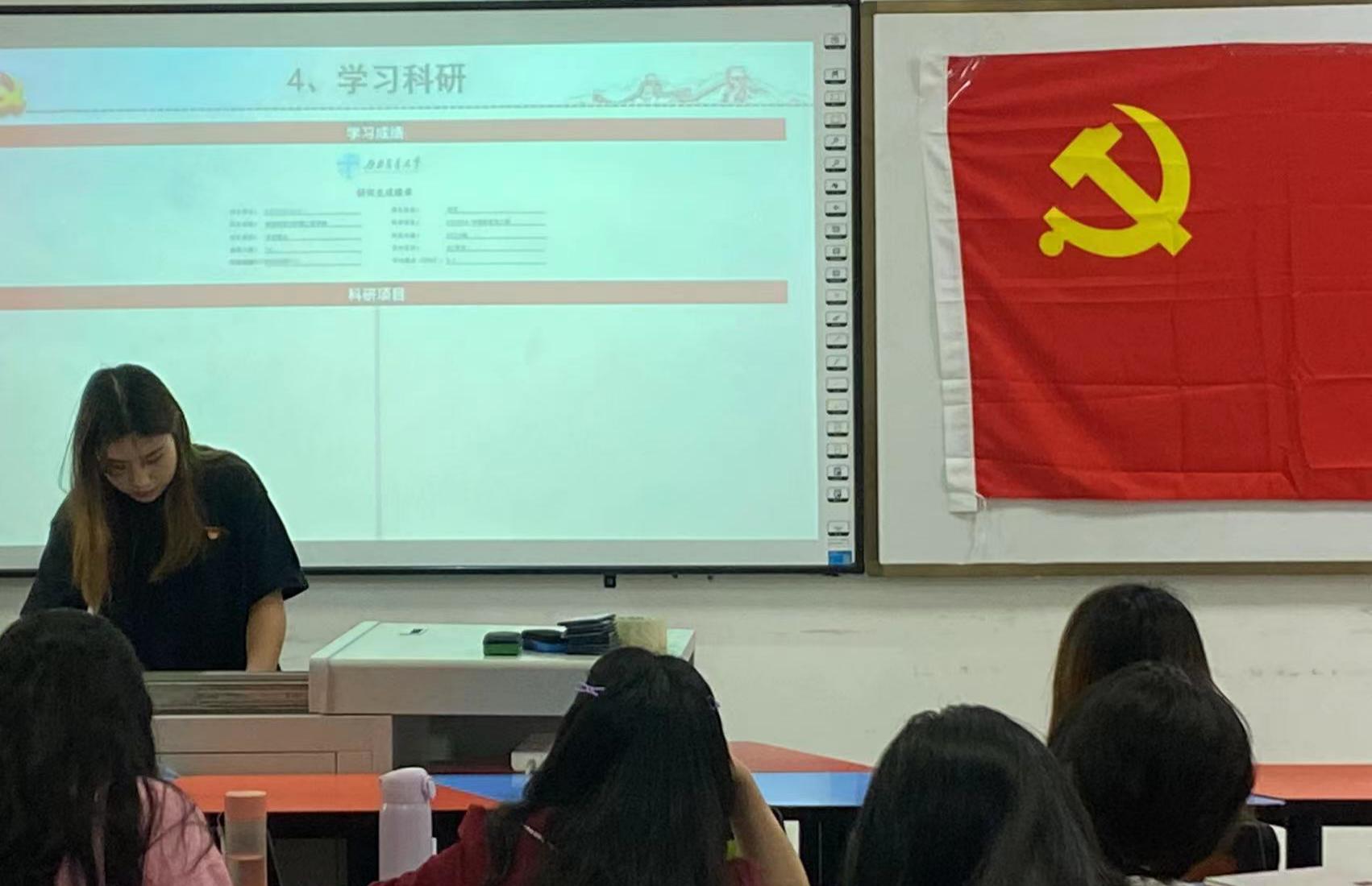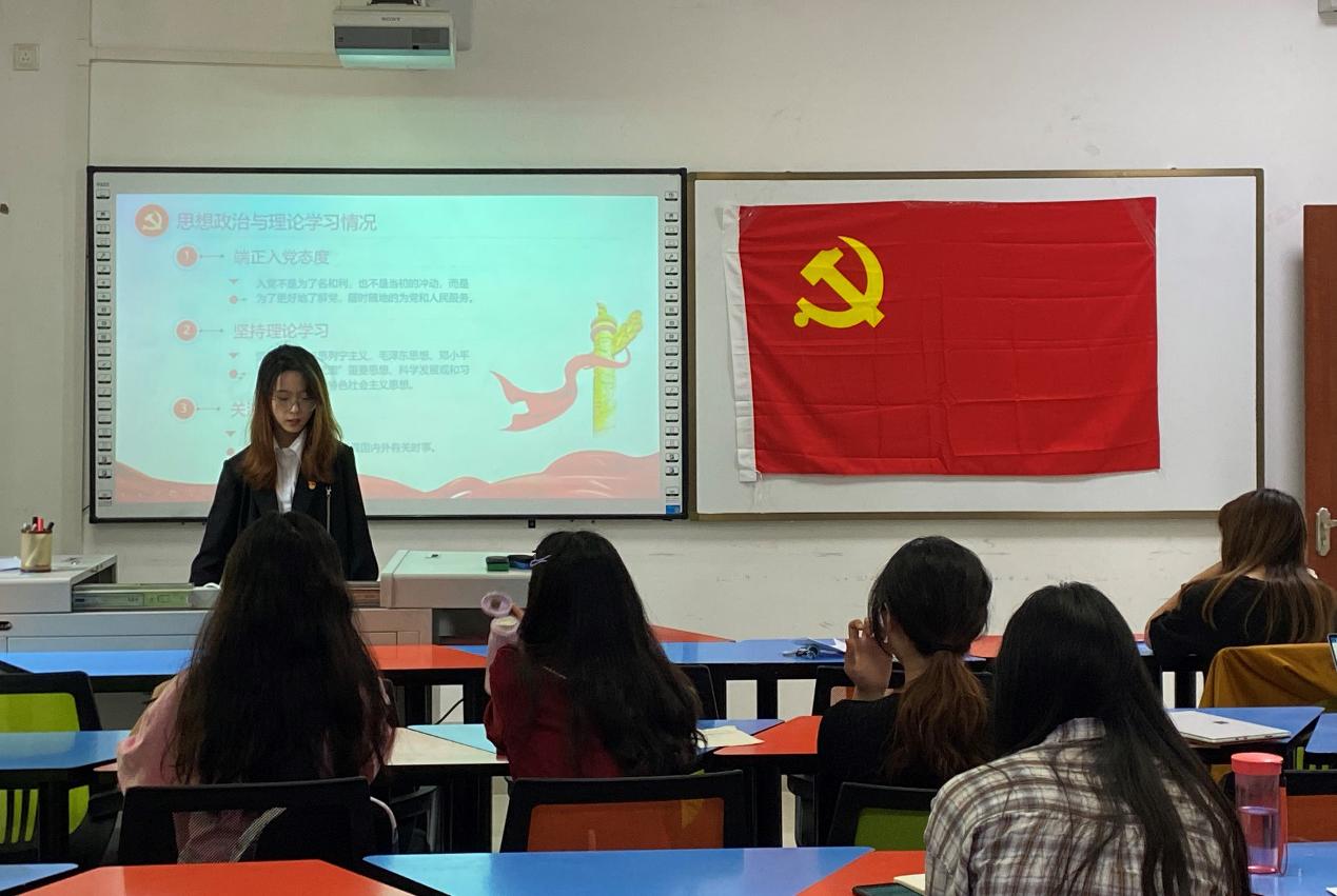 首先,三位预备党员采用PPT的形式进行汇报,从思想学习、科研活动、志愿活动、参加党日活动等相关情况对自己在过去一年情况进行了总结与反思。三位同志均表示,在成为预备党员期间,在思想上积极向党组织靠拢,一直以一名正式党员的标准严格要求自己,认真履行党员的义务,积极参与各项活动。