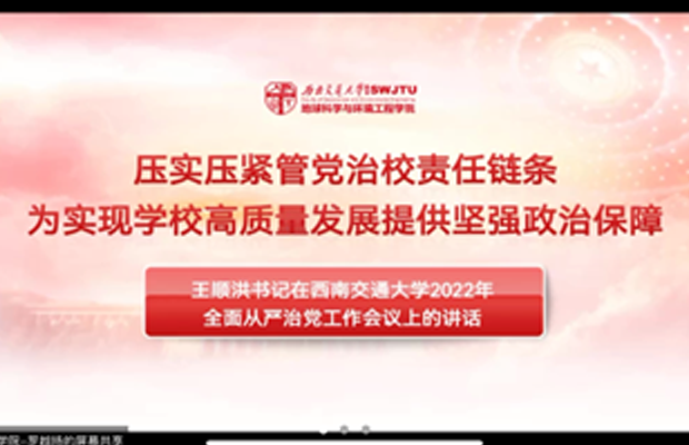 2022年全面从严治党工作会议上的讲话《压实压紧管党治校责任链条》。王顺洪书记系统地传达了习近平总书记在十九届中央纪委六次全会上的重要讲话和中央纪委全会精神,强调了全面从严治党工作的新思想、新变化、新要求、新任务。