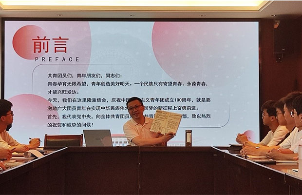 会中讲到共青团在百年征程中的重要功勋,共青团员们积极投身伟大斗争,伟大工程,伟大事业,伟大梦想的实践中,傅尤刚同样鼓励大家积极投身到伟大事业的建设中。努力实现自身价值。