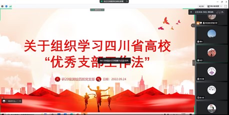 2022年9月24日12:45,研20级测绘第四党支部开展四川省高校“优秀支部工作法”活动。党的十八大以来,四川省高校党支部立足职能职责,坚持”为党育人、为国育才”初心使命,在深化教学科研攻关、服务师生群众、提高人才培养质量等方面有效发挥战斗堡垒作用,但同时也存在有的高校党支部政治引领和政治吸纳能力不强、组织生活制度落实不严格、党员发展和教育管理机制不健全、党务工作不规范等问题针对这些问题,按照“可学习、可借鉴、可复制、可推广”的原则,择优确定了20个“优秀支部工作法”。