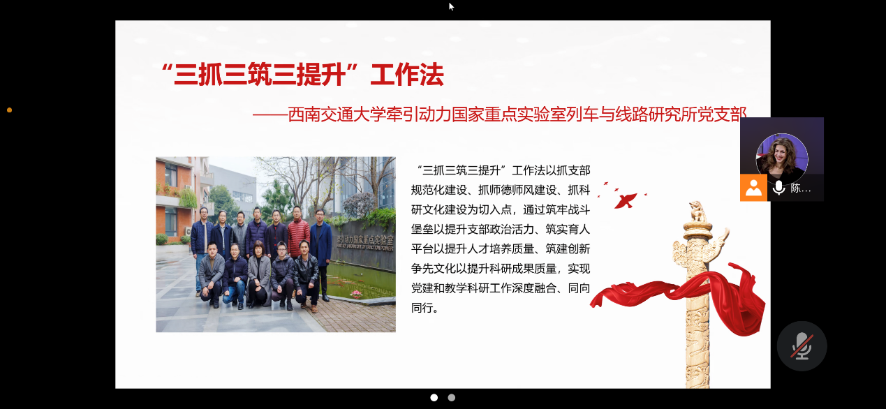 牵引动力国家重点实验室列车与线路研究所党支部的“三抓三筑三提升”工作法,学习内容主要为“优秀支部工作法”的基本内涵、主要做法、工作启示以及具体案例。