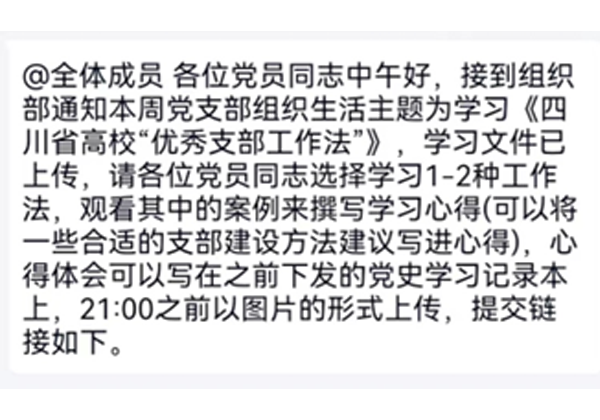 为贯彻落实全省高校党的建设工作会议精神,进一步提升高校党建工作质量水平,四川省启动了高校党建工作品牌创建活动和优秀“支部工作法”推荐评选活动,按照“可学习、可借鉴、可复制、可推广”的原则,择优确定了20个“优秀支部工作法”,并于2022年6月举行了发布推广会。2022年9月25日,本科地质资勘党支部组织并开展《四川省高校“优秀支部工作法”》专题学习党日活动。