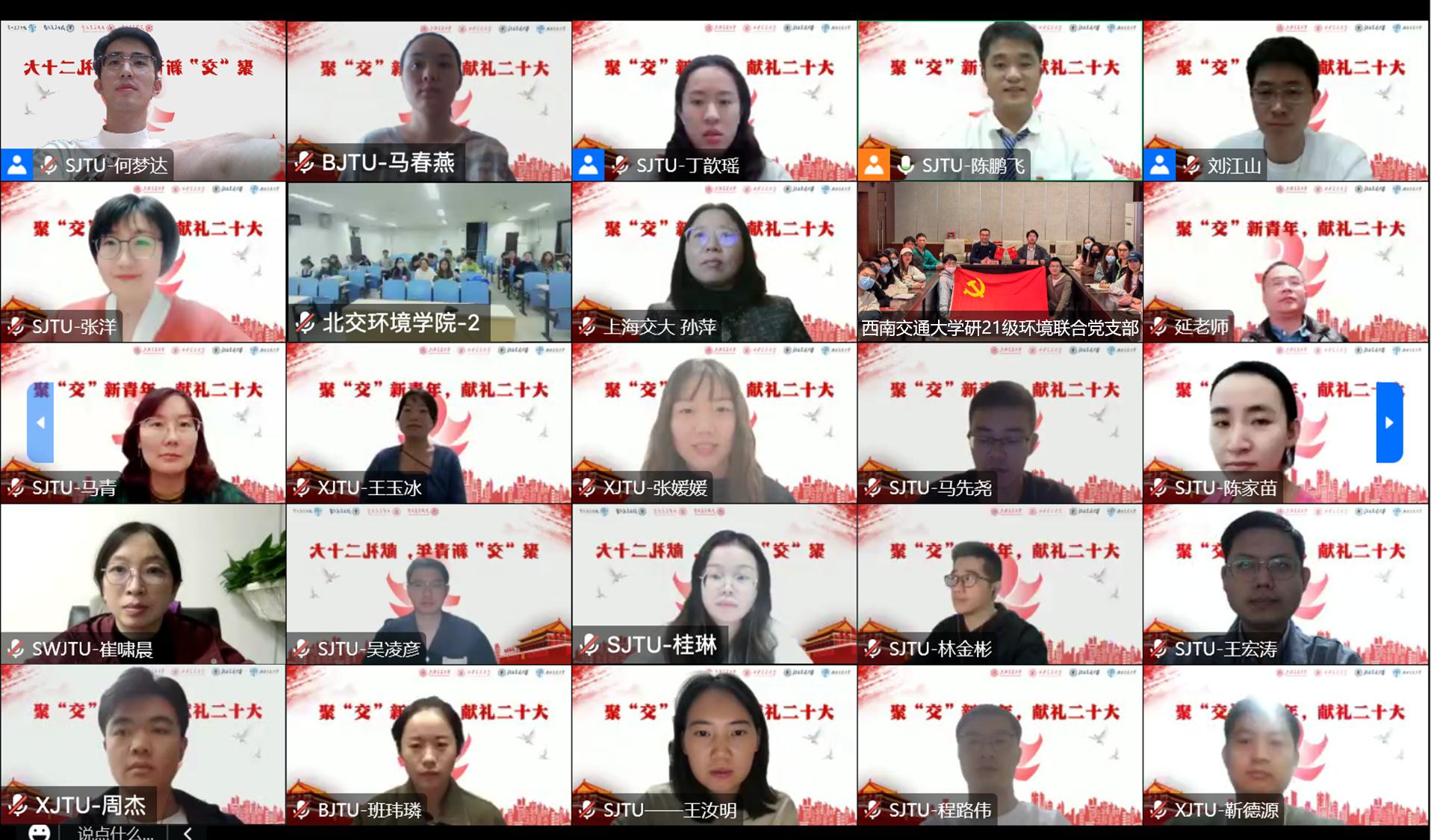 大会伊始,主持人介绍了本次活动嘉宾以及参会师生,然后四所交大的承办党支部依次展示了支部的风采短片,为迎接二十大喊出响亮的口号。