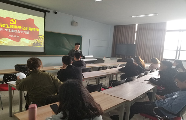 2019年11月21日,研19级环境一、二班党支部于犀浦校区X9454联合开展了学习王洪顺书记讲话精神和开展广泛动员学活动。会议由王洪昌同志主持,支部全体党员参加了本次活动。