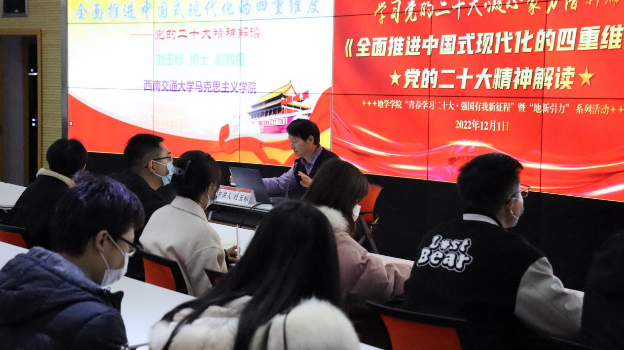 刘玉标聚焦党的二十大精神,以“全面推进中国式现代化的四重维度”为题,为全体参会同学带来了一场思想的“精神盛宴”。