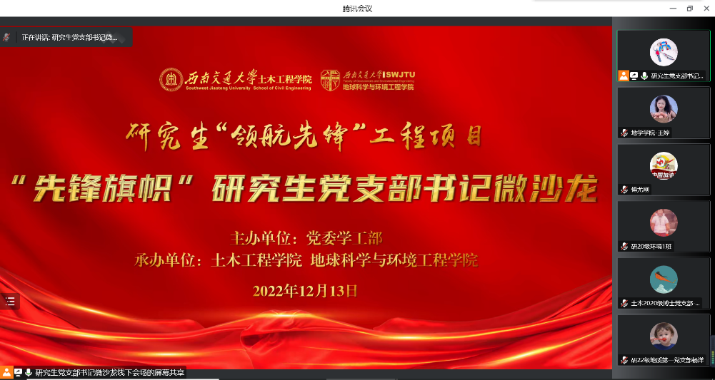 党委联合土木学院党委于2022年12月13日通过线上的方式举办研究生党支部书记微沙龙活动,旨在以沙龙座谈交流的形式促进跨学院党支部共学共享,提供学生党支部书记交流平台,深入探讨研究生支部建设以及党员教育、管理的“疑难杂症”,提升党支部书记的政治素养与业务能力。本次活动邀请了污污漫画