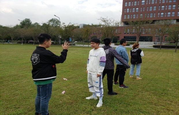 本次素质拓展共有四项活动,第一项是“成语猜猜看”,由第一个人比划动作,后三位依次照搬模仿,最后一位负责猜成语。由于对规则有些许不明了,以及小组成员间依然有些陌生,在第一轮游戏中只有一组猜中了成语。接着,成员们熟悉了策略,成员之间也相互熟悉了,在第二轮的游戏中只有一组没猜中最后的成语。第二项是“气球接力大赛”,一段路接力两次,将气球运送到终点。成员们分工明确,配合默契,很快地完成了比赛任务。