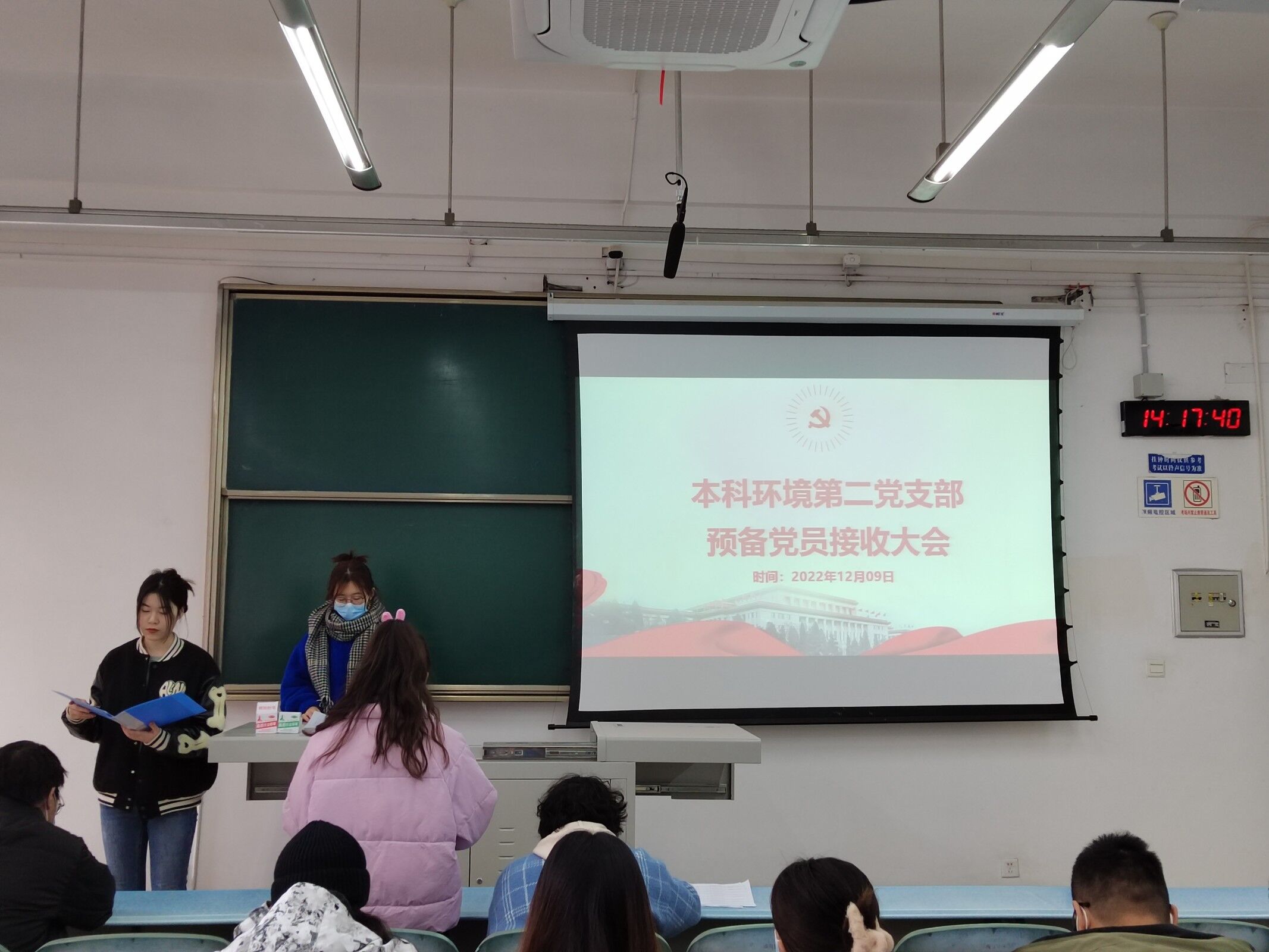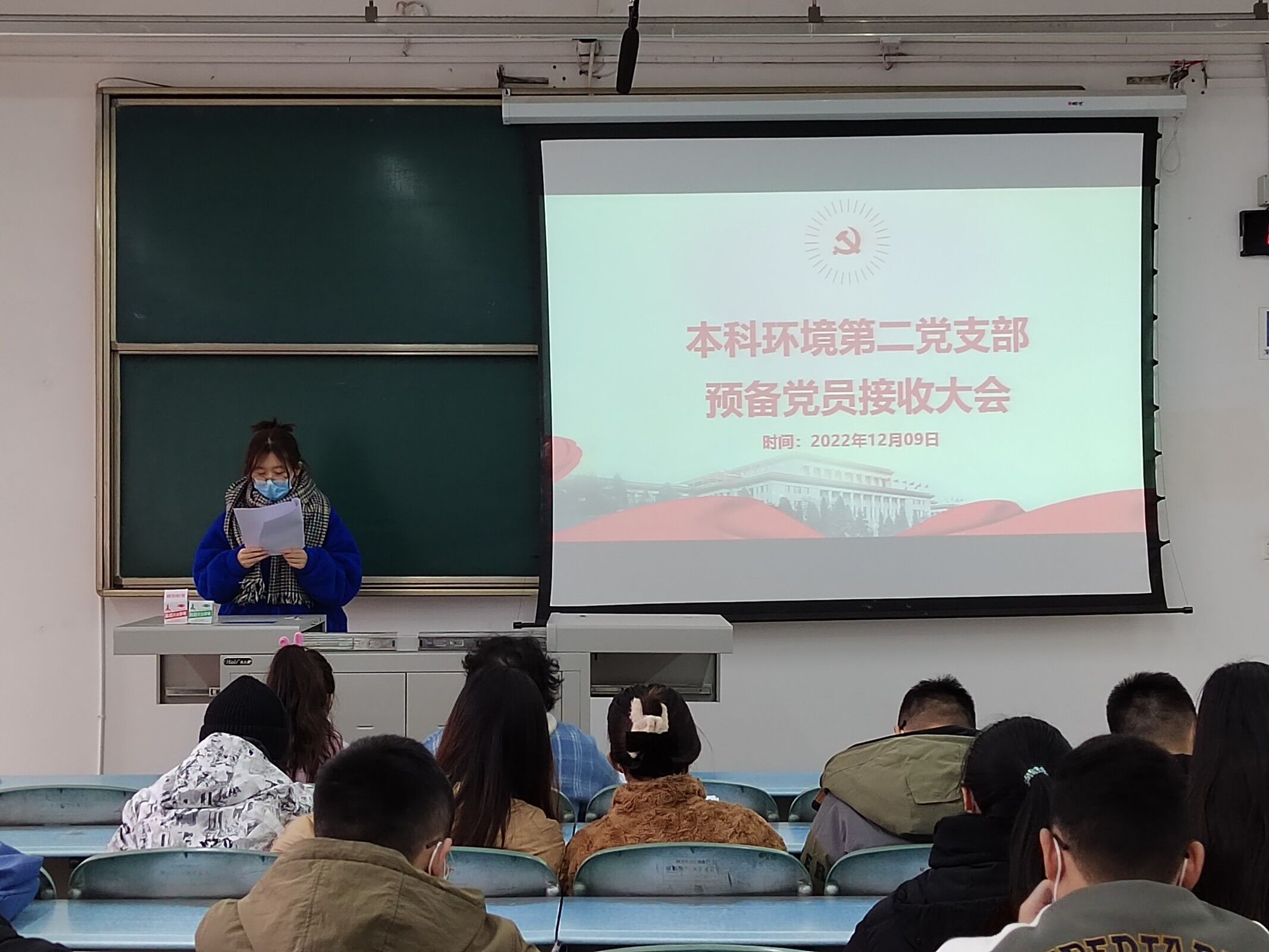 2022年12月9日14:00,本科环境第二党支部于X2224线下开展了2022-02期预备党员接收大会。本次活动由本科环境第二党支部书记黄泳桦同志主持,本科环境第二党支部全体党员参与。
