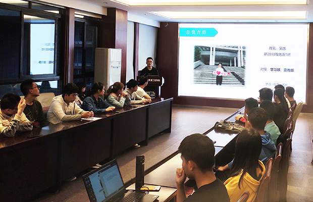 在各个部长介绍完本学期的工作计划之后,各部门的新干事进行了自我介绍,现场气氛欢快。