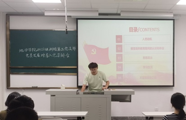 研22级测绘第三党支部在J2624教室顺利召开发展对象入党答辩会,会议的主题是讨论座谈会推荐的入党积极分子邓江渝同志是能否成为2023-01期发展对象。本次会议共有14名正式党员、8名入党积极分子参加,会议由党支部组织委员杨成明同志主持。