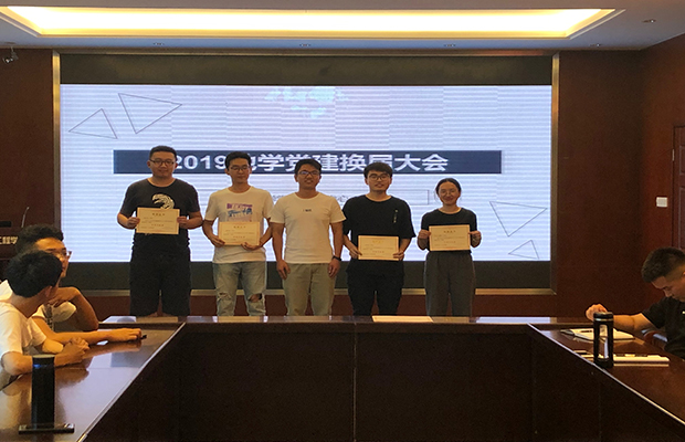 首先,文强为离任的主任助理和部长颁发证书,并为新一任的部长与副部长颁发聘用证书。