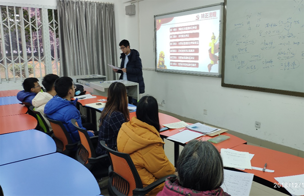 犀浦校区X2109教室顺利开展了预备党员转正支部大会。会议讨论了关于周曈、李奇芪两名同学申请转为正式党员的问题。会议由党支部书记郭永欣主持,组织员冯丽梅老师指导及全体党支部成员和9位群众出席了此次会议。