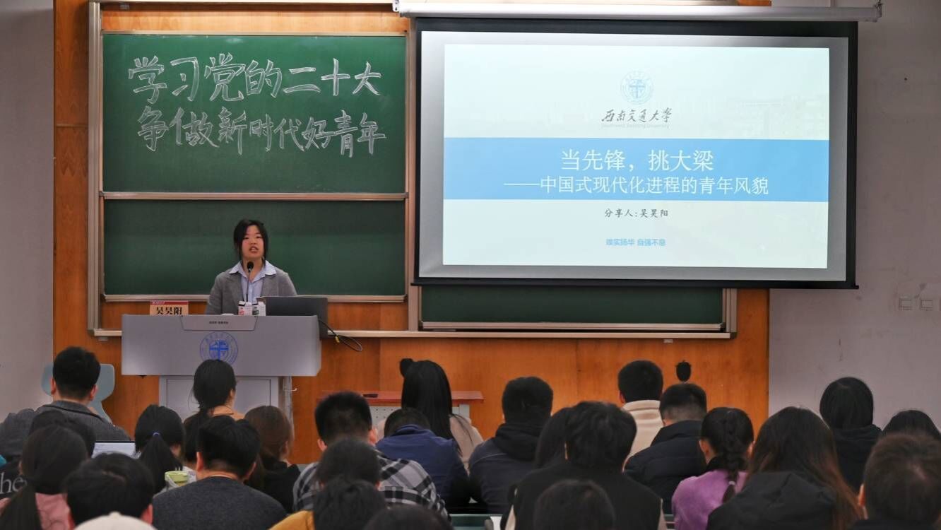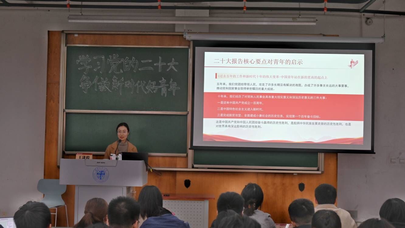 王潇毅则从党的二十大召开的重大意义出发,重点围绕党的二十大报告的主体框架、核心要点、习近平总书记对青年的寄语以及如何做新时代好青年四个层面进行宣讲。王潇毅充分结合学生的实际生活和工作,指出作为地学学子,应锚定国家战略需求,针对“双碳”、环境污染防治等学科相关热点,志存高远、施展才干、实现梦想,争做勤于学习、敢为人先、顽强拼搏、团结奋斗的新时代好青年,让青春在全面建设社会主义现代化国家的新征程上绽放绚丽之花。