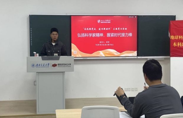 第二位领学人:竢实扬华奖章拟推荐获得者叶文帅同志主要分享了钱学森的的先进事迹,并结合专业背景以“多学科交叉,争做新时代地质人”为题进行了分享。其中他提到:党员的八大义务中的第一大就是学习,不仅学习党的基本知识,学习科学、文化、法律和业务知识,还应该交叉地学习,多学科地掌握,才能更好地多维度看待一个问题,多维度解决一个问题,多学科寻找自然中冥冥存在的规律,才能更好地为人民服务。