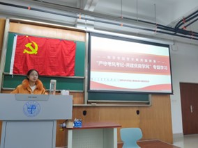 接下来陈馨怡同志开展了“严守考风考纪·共建优良学风”专题学习会。在会议中,陈馨怡同志结合本科教务网上近两年的违纪违规的考情通报等作为反面案例,向同志们强调考风考纪的重要性。党支部呼吁广大本科生党员要自觉维护考风考纪,坚决抵制一切违规作弊行为,共同打造优良的学风。安萌同学也就此发表了自己的感悟,呼吁同志们要做好党员的先锋榜样作用,时刻警醒自己。