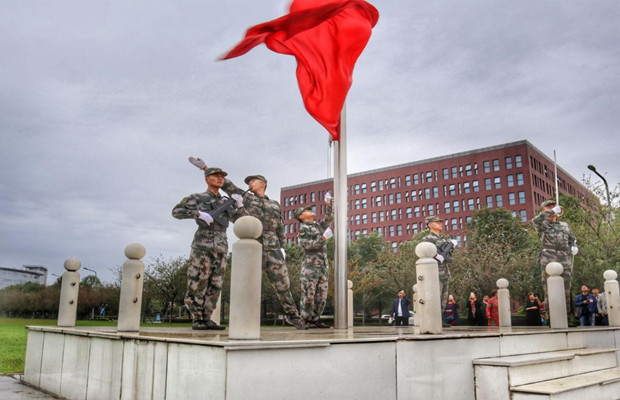 10月1日上午八点半,我们研17级测绘二、三班举行观看了国庆69周年主题党日活动升国旗仪式,隆重地庆祝中华人民共和国成立69周年,参加升国旗仪式的还有各学院的老师和学生。