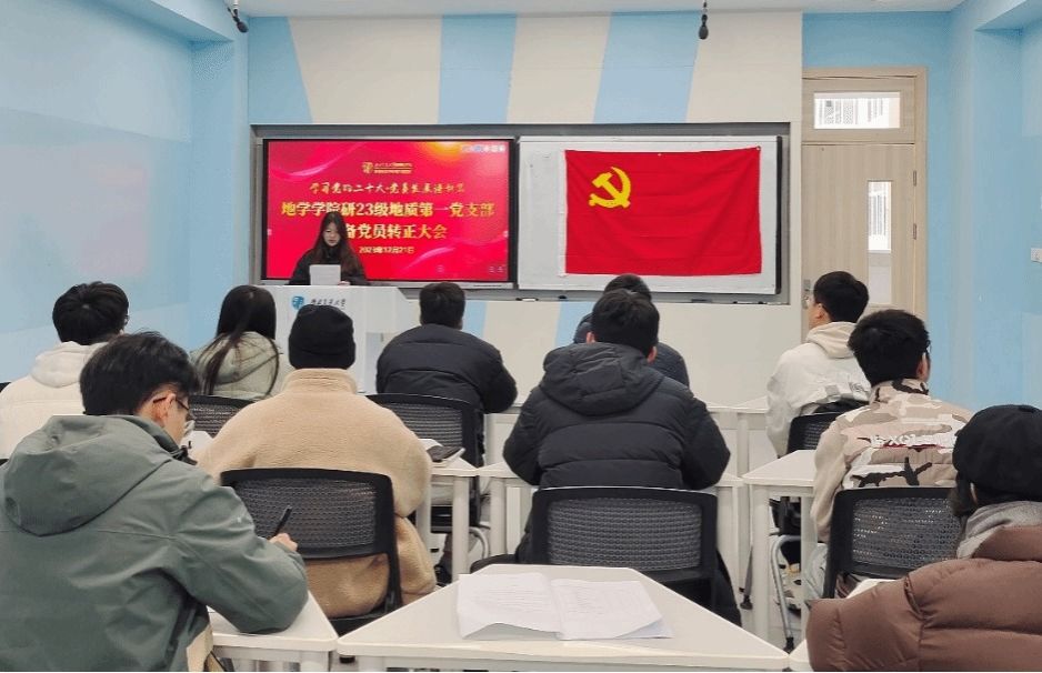 为进一步加强党员队伍建设,增强党员队伍的生机和活力,研23级地质第一党支部于2023年12月21日下午15:50在J4205召开了2022-02期预备党员转正大会,大会讨论了关于预备党员石奥博和李乐的转正问题。党支部书记张雨晴同志主持本次会议,支部全体党员同志参与此次大会。