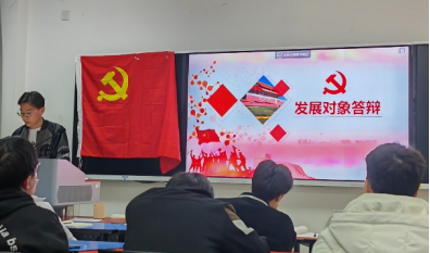 主题党日活动结束后,由三位候选人陈炜、罗嘉潍和王晋昆分别作领学人并进行发展对象答辩,主要包括入党动机以及培养教育的认识体会、思想政治、道德品行、自身基本情况、培养教育期间的收获等。每位候选人陈述、展示完毕后,与会成员紧接着对其展示内容进行提问,拟推举2人作为最终人选。