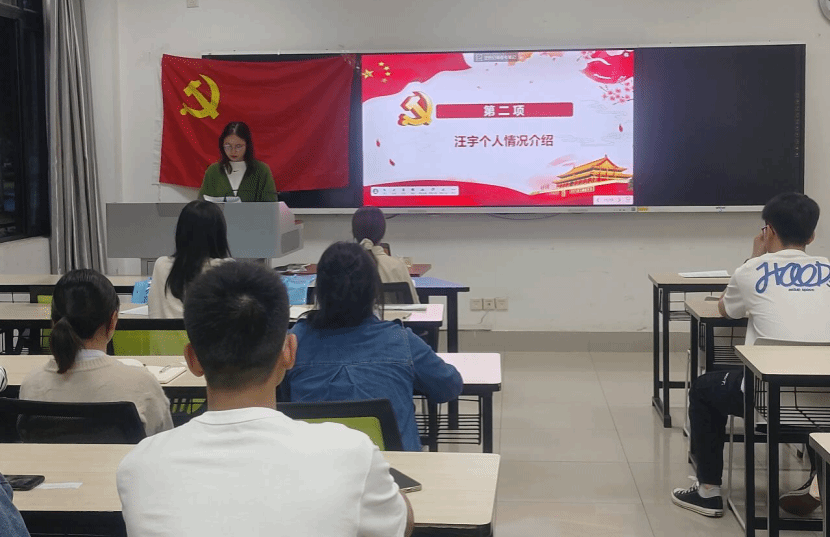 大会第三个环节,由支部组织委员汇报发展对象的审查情况。龚依婷同志表示,根据一段时间的考察培养,可以看出汪宇同志在思想政治上能够始终同党中央保持一致,认真贯彻执行党的路线,方针,政策,政治立场更加坚定;工作上扎实肯干、兢兢业业、任劳任怨;并通过同本人谈话,查阅有关档案材料,找有关单位和人员或函调了解,其本人,直系亲属及联系密切的主要社会关系是清楚的。现根据本人申请和一贯表现:在广泛征求党内外党员、群众意见的基础上,经过支部委员会充分酝酿和认真讨论,一致认为汪宇同志基本具备党员条件,决定提交支部党员大会讨论其能否被接受为预备党员的问题。大会第四个环节,现场全体党员同志进行讨论并发表意见。全体正式党员表示,汪宇同志在校期间表现良好,思想端正,积极向党组织靠拢,主动参与学院的志愿服务等。