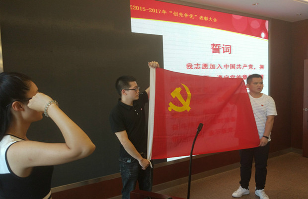 在随后的新党员入党宣誓和老党员重温入党誓词仪式上,由党委组织员刘冠军同志领誓,由李晓宇同志监誓,广大新老党员面对党旗宣誓,继承优良传统,牢记光荣使命,永葆党的先进性和纯洁性的激情,再次涌上每一位党员的心头。
