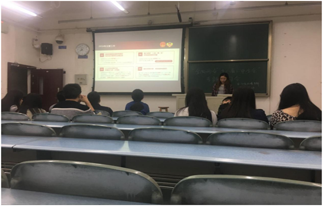 犀浦校区X2231教室召开了两会和十八届六中全会的专题学习会,会议由党支部书记文海燕主持,党支部党员、预备党员、积极分子参加了此次学习会。