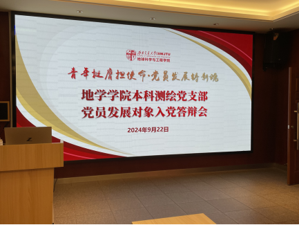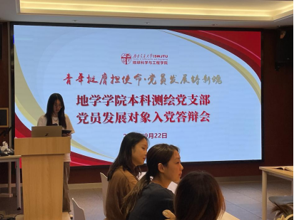 切实做好2024年发展党员工作,切实提高党员发展质量,本科测绘党支部于2024年9月22日在犀浦校区X4520开展2024-02期发展对象答辩大会,大会由胡嘉祎同志主持,陈荩娜老师出席并指导大会,本科测绘党支部共有党员19名、正式党员7名,有18名党员、7名正式党员出席会议,超过有表决权党员数量的一半,会议选举结果有效。