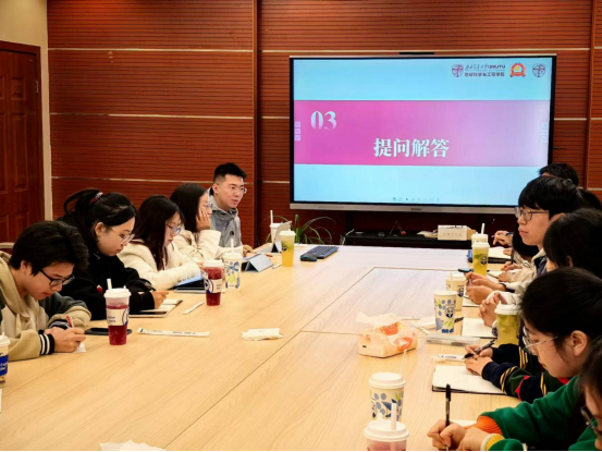 在部长团工作陈述与提问解答环节,宋盼盼副主任提出了增设干事工作登记表的建议,旨在进一步激发各部门干事的工作热情。宣传部部长李明轩、活动部部长张万昱则反映了干事们在工作中所面临的时间安排紧张等问题。针对这些问题,文强老师和胡佳慧老师给予了宝贵的建议和指导。
