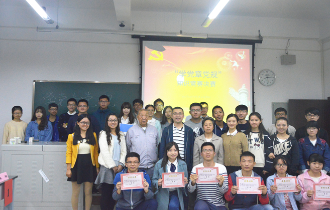 党委副书记傅尤刚,党支部指导老师刘冠军、冯丽梅,学院研究生指导员兼支部指导老师邓思然,研究生辅导员张芮,本科生辅导员兼支部指导老师翟琦、卢琴等。根据初赛成绩,本次决赛邀请了范楚梦等八名成绩优异的选手进行最后的角逐,最后2号和8号选手分别以74.4和78.7的高分荣膺一等奖。