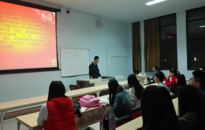 20:00,测绘一班党支书王铭庆重点讲解了王顺洪书记在会议上的报告,带领在场的全体党员一起回顾了交大第十四次党代会以来的主要工作的推进情况,并带领各位党员共同展望了交大发展面临的新形势以及学校下一步的重要工作安排,各位党员都很认真地在聆听,也都获益匪浅:
