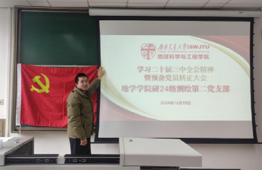 2024年12月19日下午,在J4222教室,研24级测绘第二党支部顺利开展了预备党员转正大会暨“学习党的二十届三中全会精神”主题党日活动。本次活动旨在深入学习贯彻党的二十届三中全会精神,增强党支部成员的政治意识和使命担当。