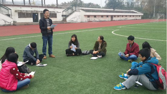 犀浦校区的南区操场开展了以“五中全会”为主题的学生党支部党日活动。