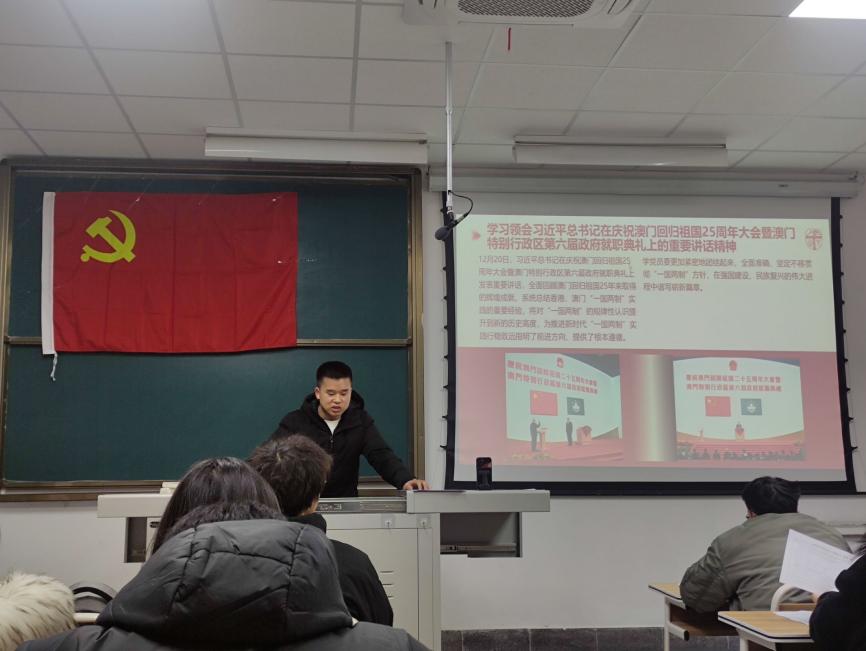 活动伊始,支部成员共同学习了习近平总书记在中共中央政治局民主生活会、庆祝澳门回归祖国25周年大会暨澳门特别行政区第六届政府就职典礼上的重要讲话精神,以及习近平主席发表的2025年新年贺词。党员们深刻领会讲话精神,纷纷表示要将党的纪律要求和国家发展目标与个人学习、科研实践紧密结合,为推动国家建设贡献力量。