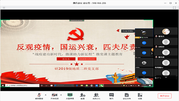 研19级地质二班党支部于2020年4月2日21点整开展“战役建功新时代,微课助理新征程”微党课主题教育。