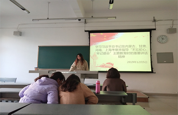 19级环境三班党支部在X9206开展微课堂“不忘初心、牢记使命”主题教育,活动由党支部书记白慧主持。
