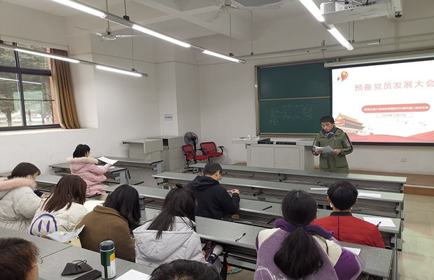 接着,支部书记傅海松宣读了表决决议。并对两位新发展的预备党员说,希望你们在今后为期一年的预备考察期间,能不断学习党的科学理论知识,提高自己的党性修养,努力克服缺点,在学习和工作上都能为身边的同学树立好榜样。