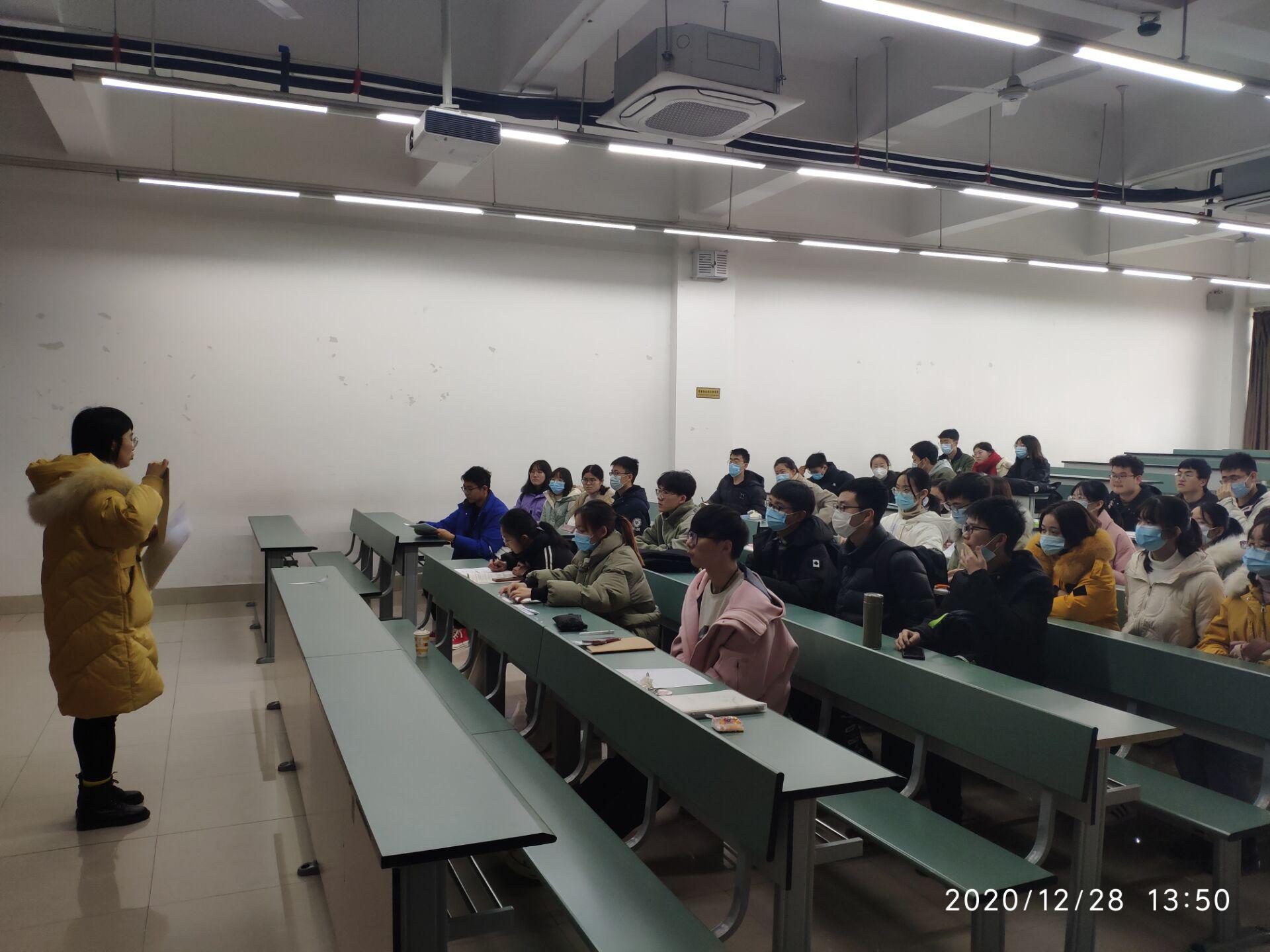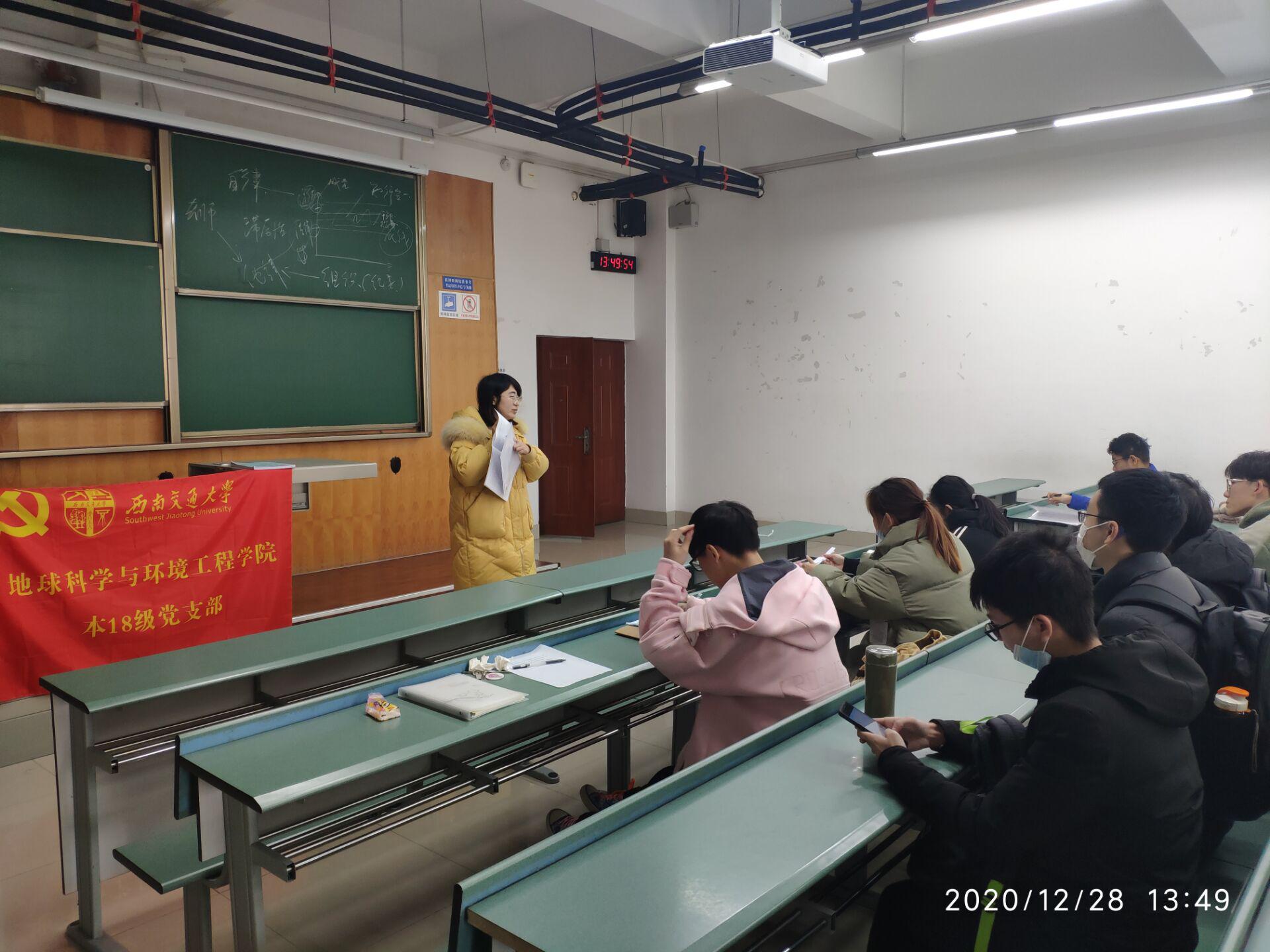 2020年12月28日中午,本18级党支部在X4358召开了党员发展大会,讨论了支部28位发展对象接收位预备党员的相关事务。本次会议由本18级党支部书记孙惠敏同志主持,对接组织员老师傅尤刚、杨都强、文强参与指导,支部10名学生党员配合工作。