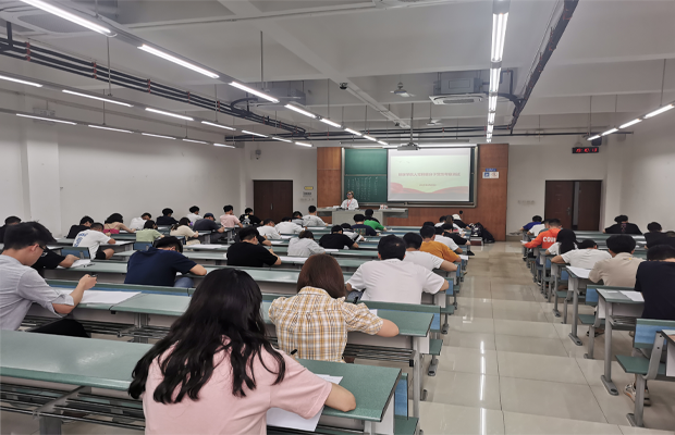 测试开始前半个小时,党建事务中心负责监考的干事以及监考老师到达考场,进行考前准备工作:安排座位、说明竞赛要求等。同学们大多早早来到考场,有些正在看着手机中相关知识点。
