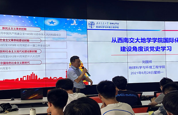 执行院长刘国祥教授讲党课,主题为“从西南交大污污漫画