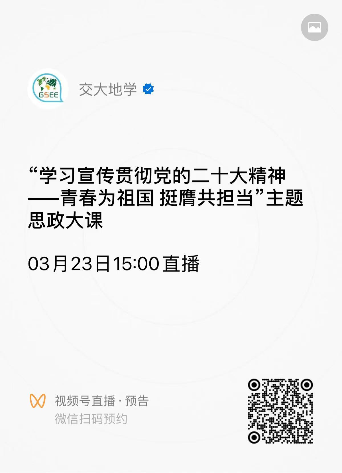 青春,是江流不转之精神,是屹然独立之气魄,青春就是要与时代相辉映,要与祖国共奋进。为学习宣传贯彻党的二十大精神,贯彻落实习近平总书记对青年工作的重要论述,引导院内全体学生立大志、明大德、成大才、担大任,进一步明晰新时代青年的理想与追求,让奋斗成为青春最亮丽的底色,2023年3月23日下午15时,人民网邀请了党的二十大代表、知名高校思政教师、优秀青年大学生等开展“学习宣传贯彻党的二十大精神·青春为祖国 挺膺共担当”主题思政大课。根据教育部思政司及学校有关要求,现就有关事项通知如下: