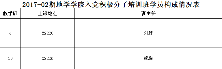 2.学员必须在名单所对应的班级上课,如果在其他班级上课将影响党课成绩认定。