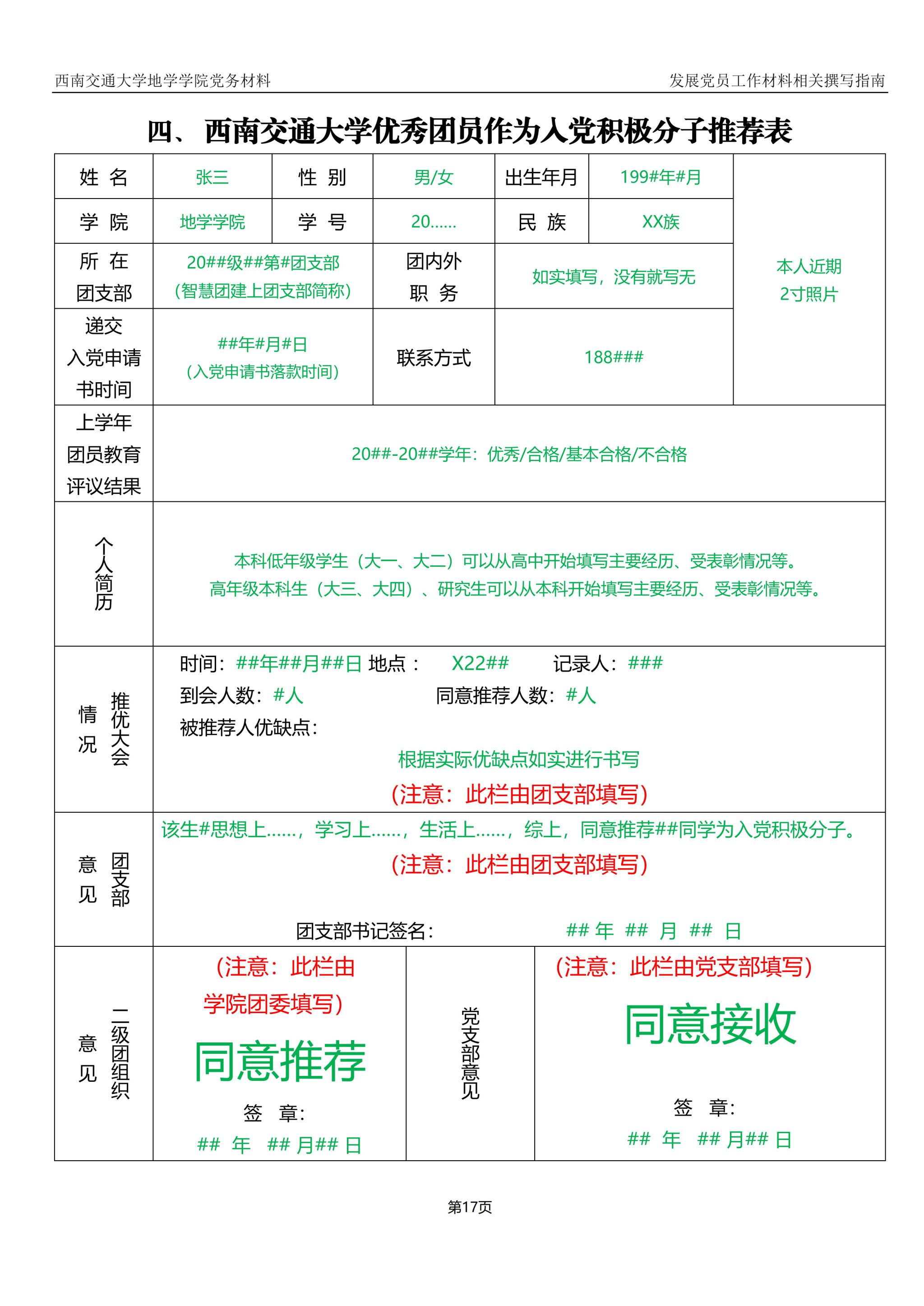 部分同学在推荐为入党积极分子时已年满28周岁(多见于博士党支部或教工党支部),自动退出中国共产主义青年团,无法通过团支部完成团内推优。此类同学需下载入党积极分子人选推荐表(党员推荐),采用党支部召开会议推荐或个别谈话推荐或党员联名推荐的方式,由至少2名中共党员签字推荐,与同期团内推优入党积极分子人选一起由党支部召开支部委员会或支部党员大会接收。
