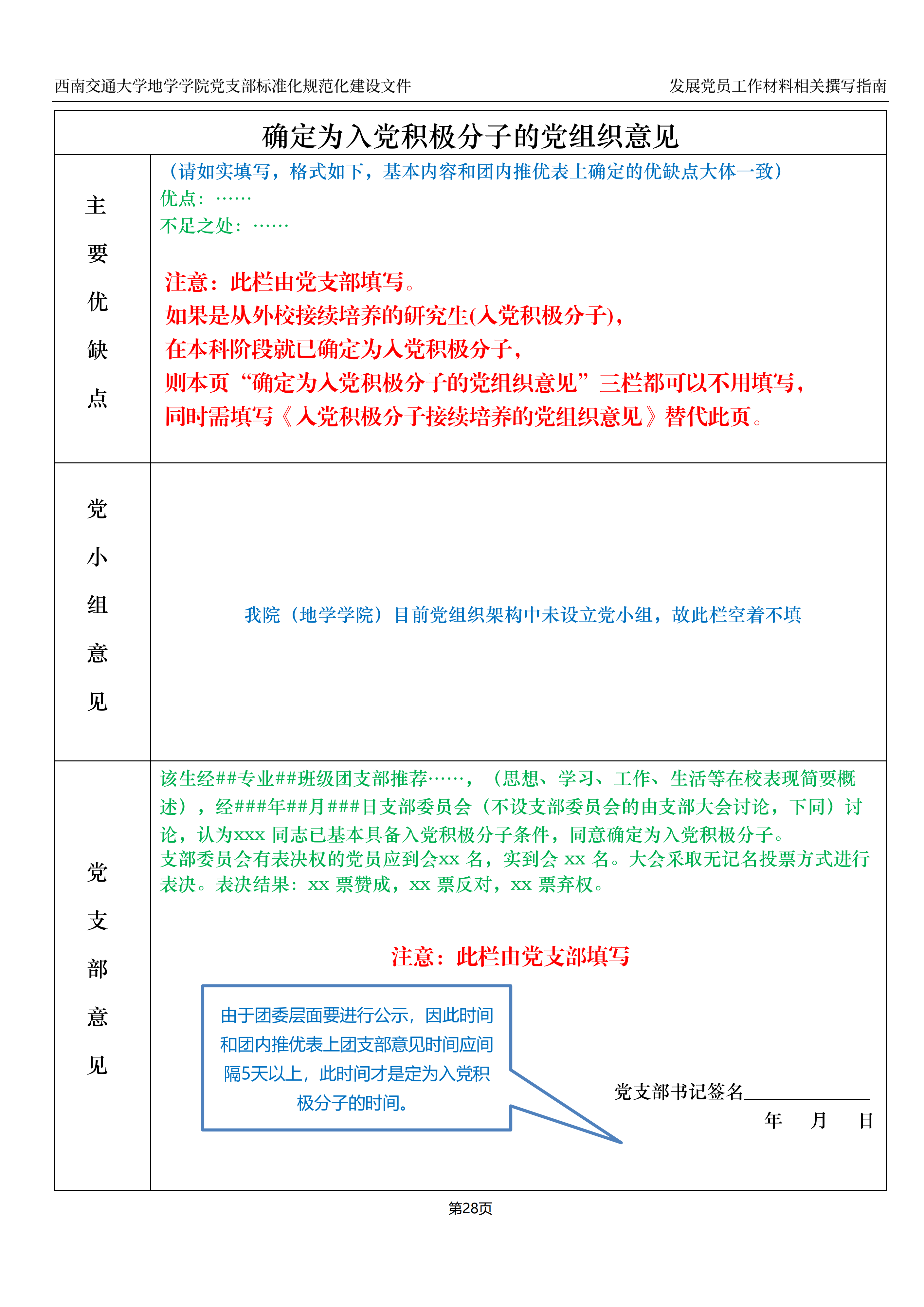 《入党积极分子接续培养的党组织意见》原表有地环版本与地学版本,见附件2、3,A4单面打印。